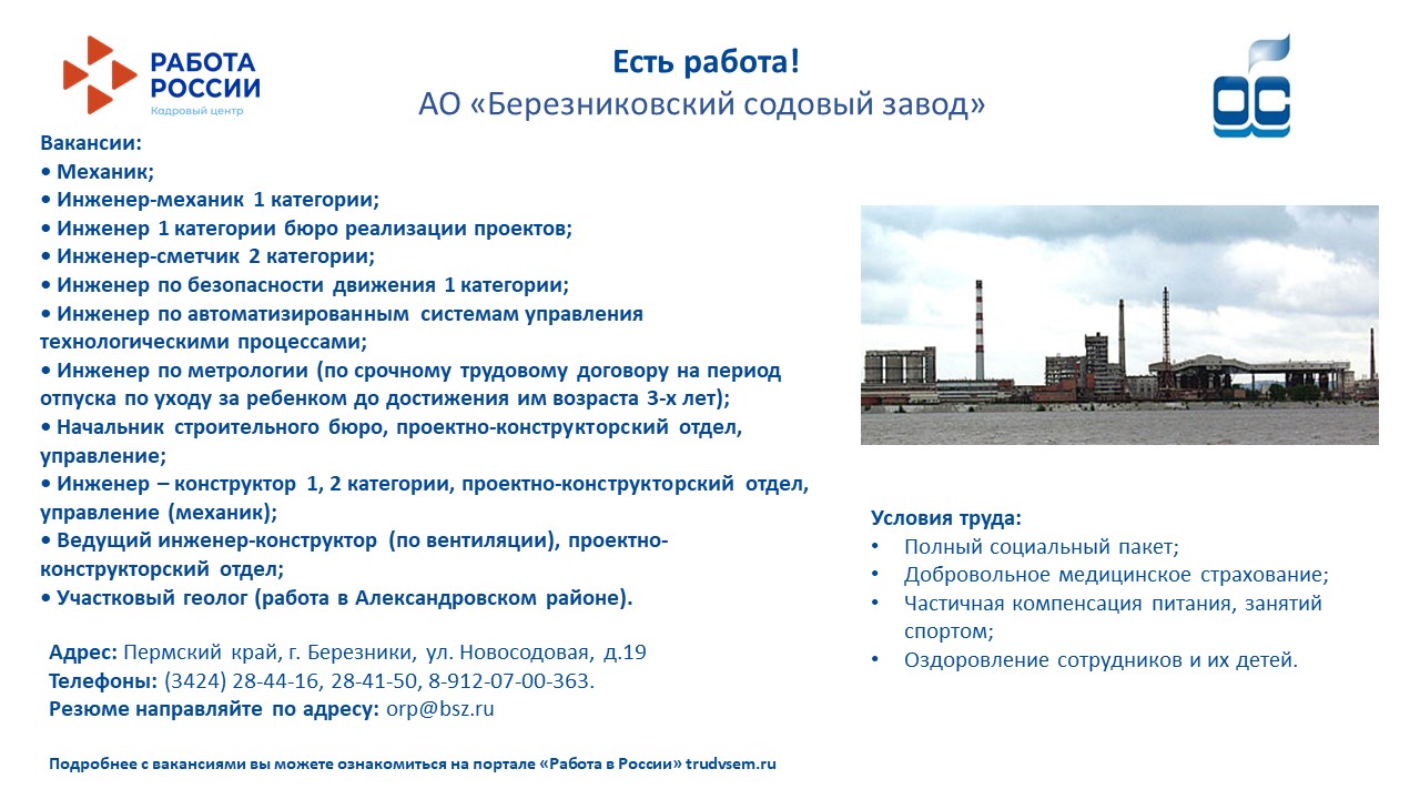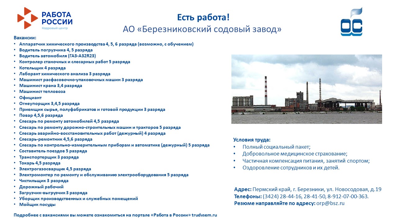 Вакансии от АО "Березниковский содовый завод"