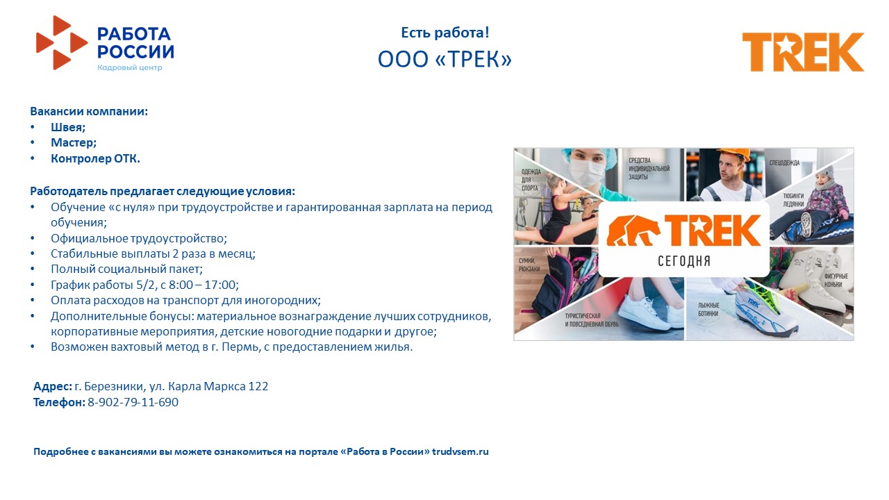 Фабрика TREK основана в 2004 году в г. Пермь и имеет два направления производства: обувное и швейное. Основной ассортимент фабрики это: лыжные ботинки, коньки, туристическая обувь и спортивная обувь из натуральной кожи, тюбинги (санки-ватрушки), ледянки.