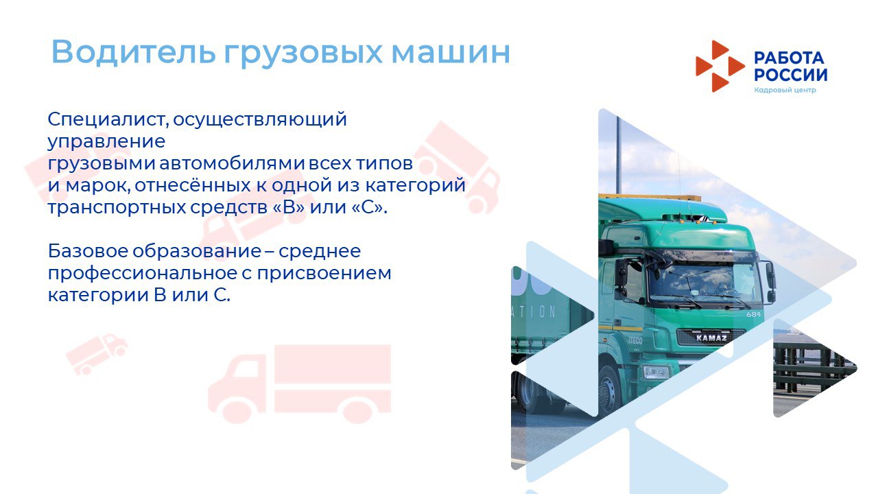 • Водитель грузовиков, заработная плата до 150 тысяч рублей