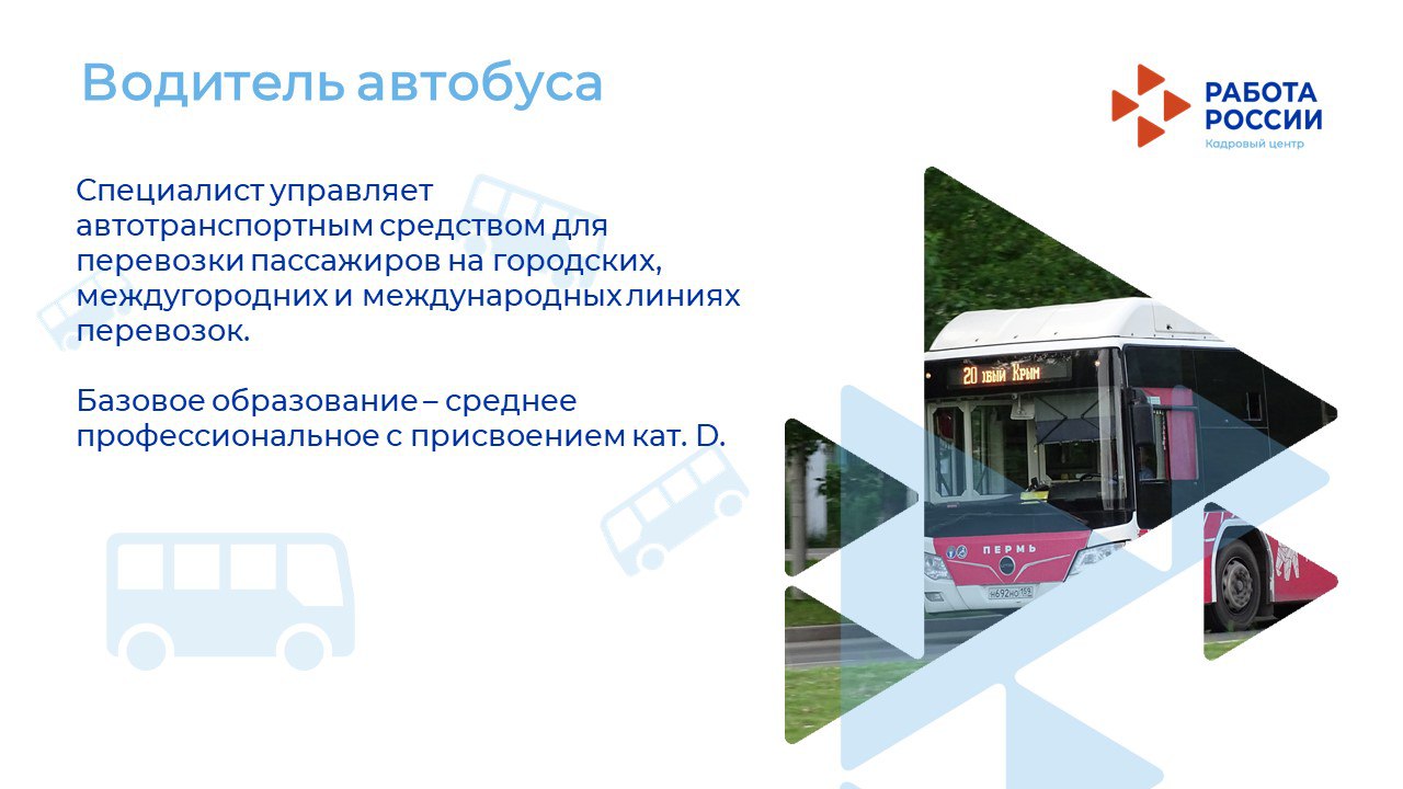 • Водитель автобуса, заработная плата до 70 тысяч рублей