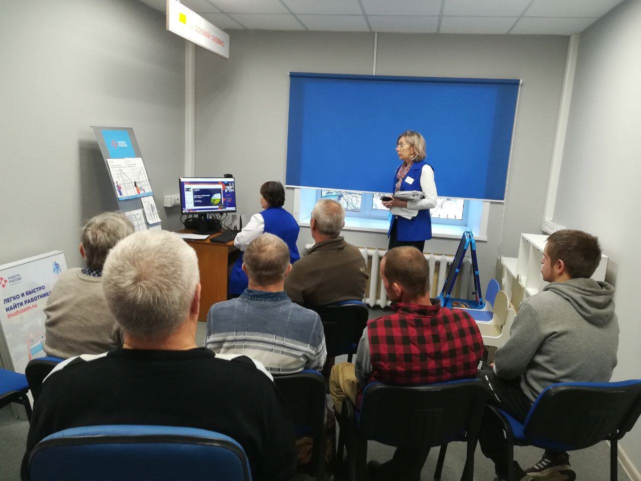 Онлайн подключение проходит в территориальных отделах Центра занятости. В рамках проекта модернизации все офисы оснащены телеэкранами, проекторами, видеокамерами и другим необходимым оборудованием, которое позволяет организовывать дистанционные мероприятия.