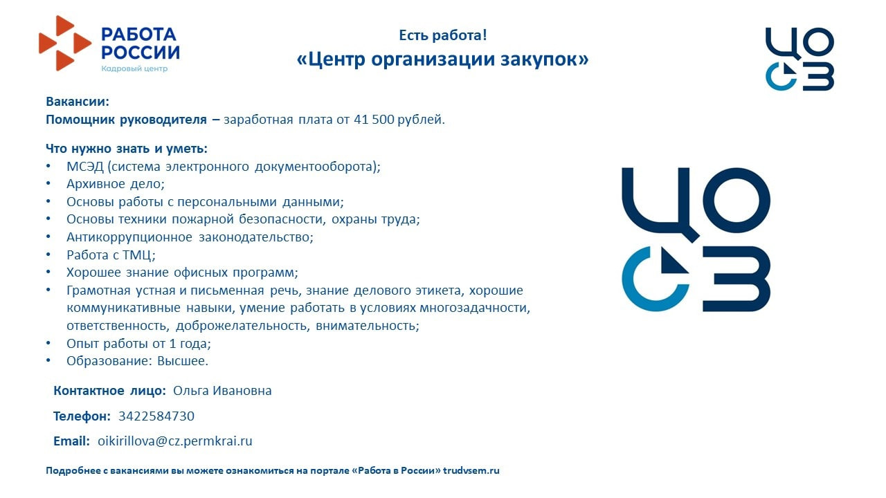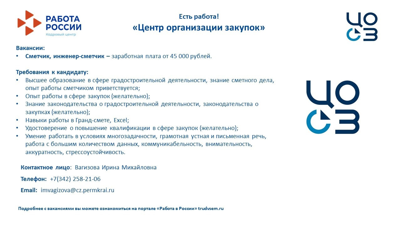 ЕСТЬ РАБОТА! Вакансии от ГКУ «Центр организации закупок»