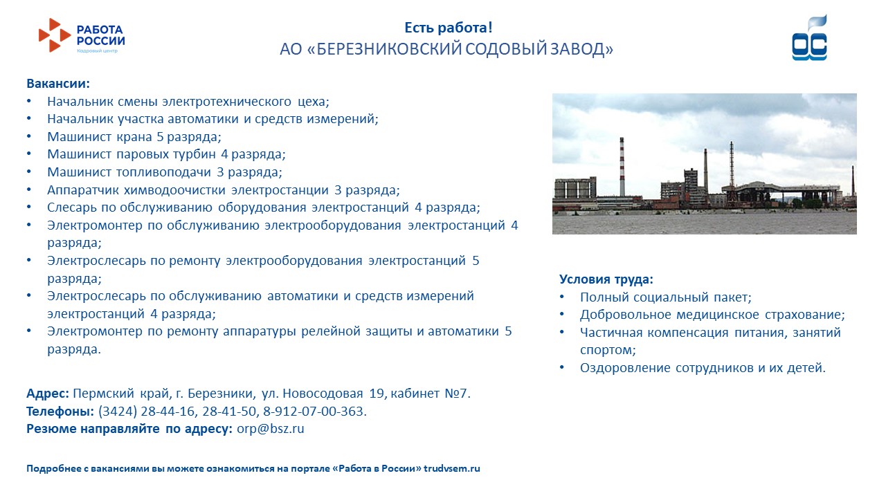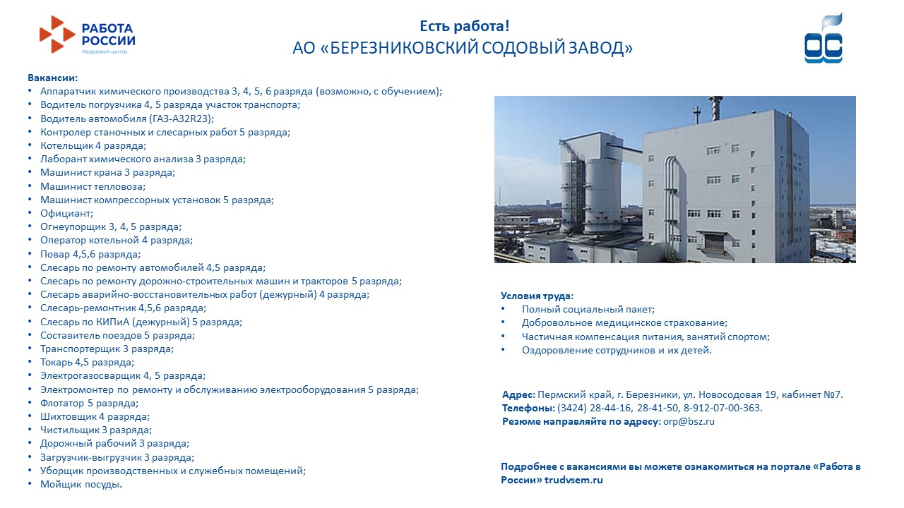 Березниковский содовый завод — крупнейший производитель соды и карбонатных пород. АО «Березниковский содовый завод» заслужило репутацию надежного поставщика соды среди потребителей, как на внутреннем, так и на внешнем рынке.