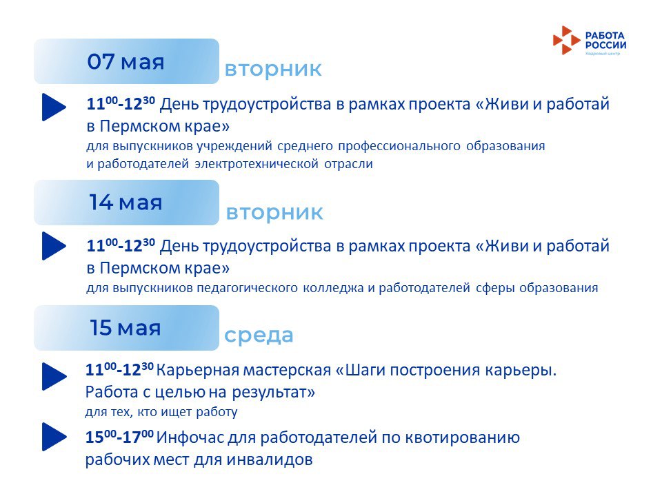 С 7 по 17 мая в Кадровом центре пройдут мероприятия для работодателей и для жителей города: