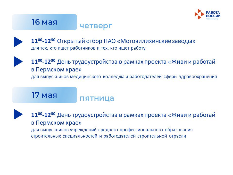 • Дни трудоустройства в рамках проекта "Живи и работай в Пермском крае"
