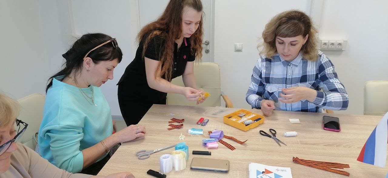Также прошла акция «Георгиевская ленточка».  Посетители Кадрового центра на мастер-классе изготавливали нагрудные украшения из георгиевской ленты.