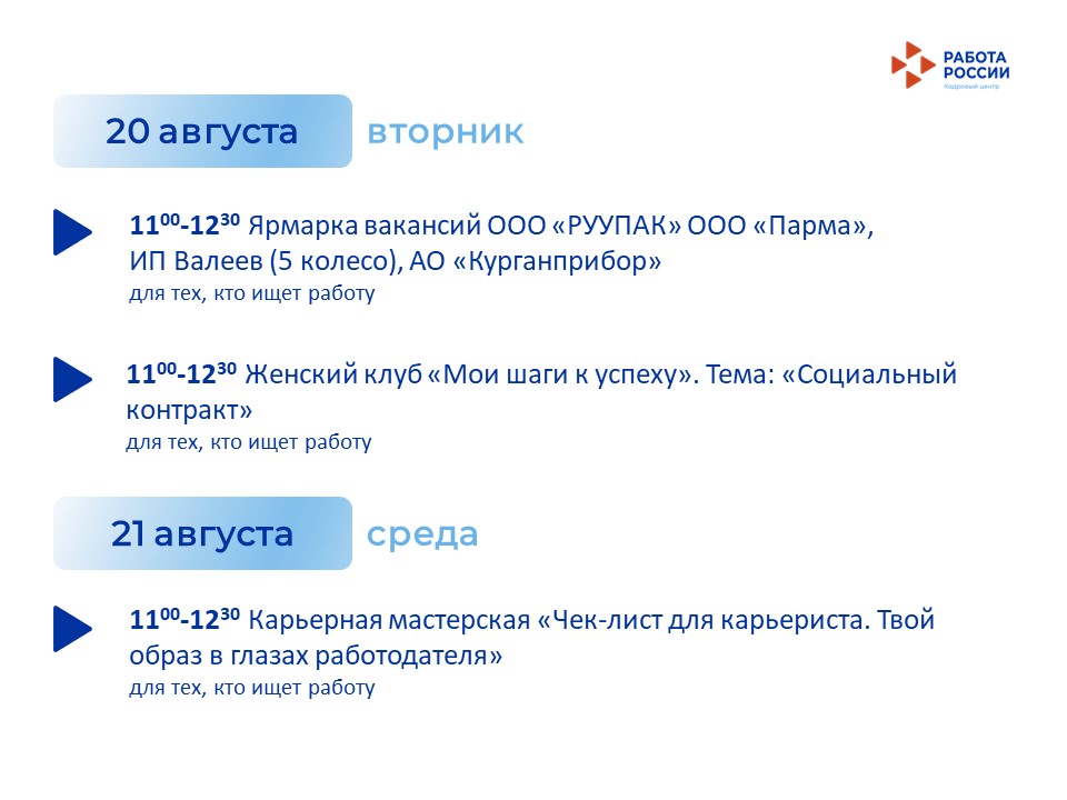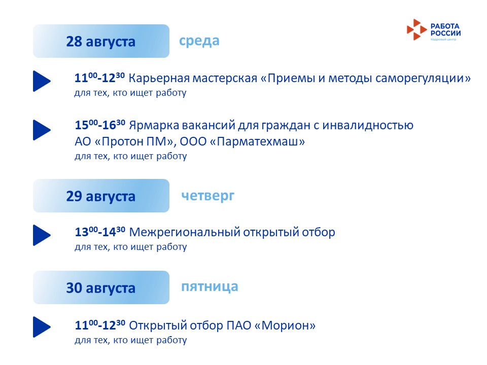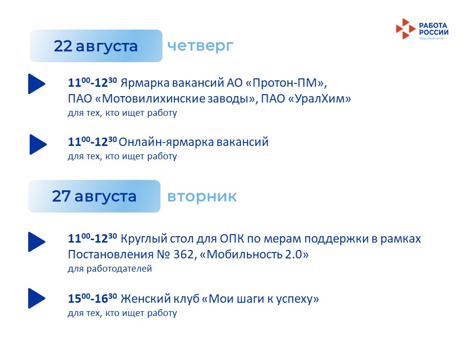 С 19 по 30 августа Кадровый центр продолжает проводить мероприятия  для работодателей и для жителей города: