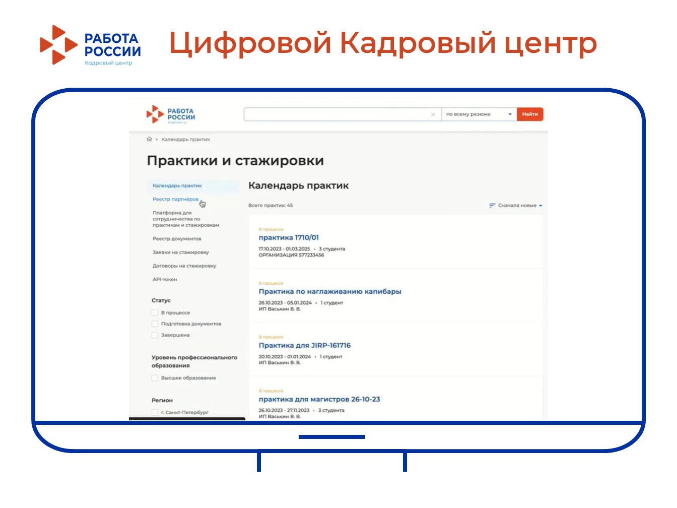 Подробно процесс описан в инструкции для работодателя и видео-демонстрации в разделе «Информация о практиках и стажировках».