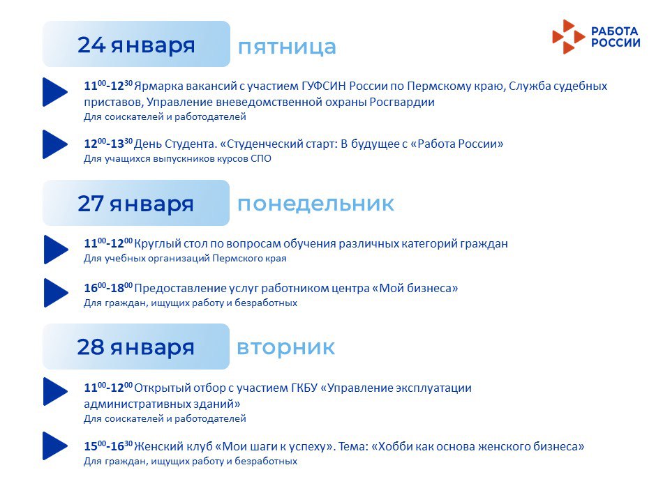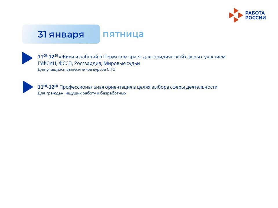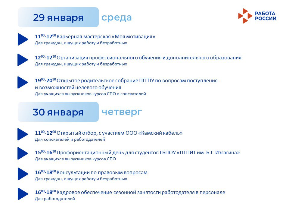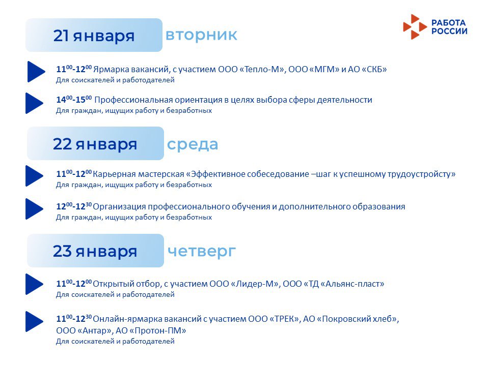 С 21 по 31 января Кадровый центр продолжает проводить мероприятия для работодателей и для жителей города: