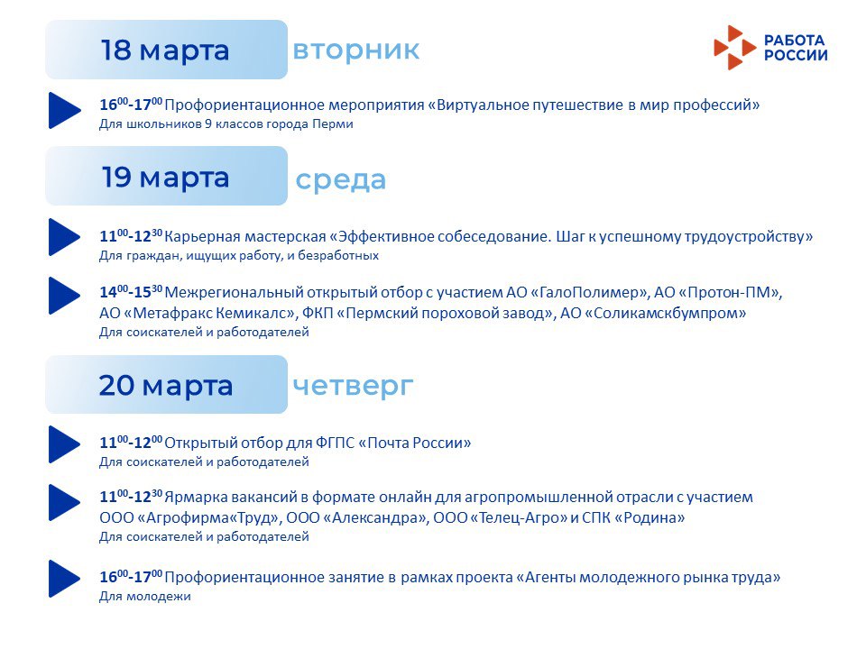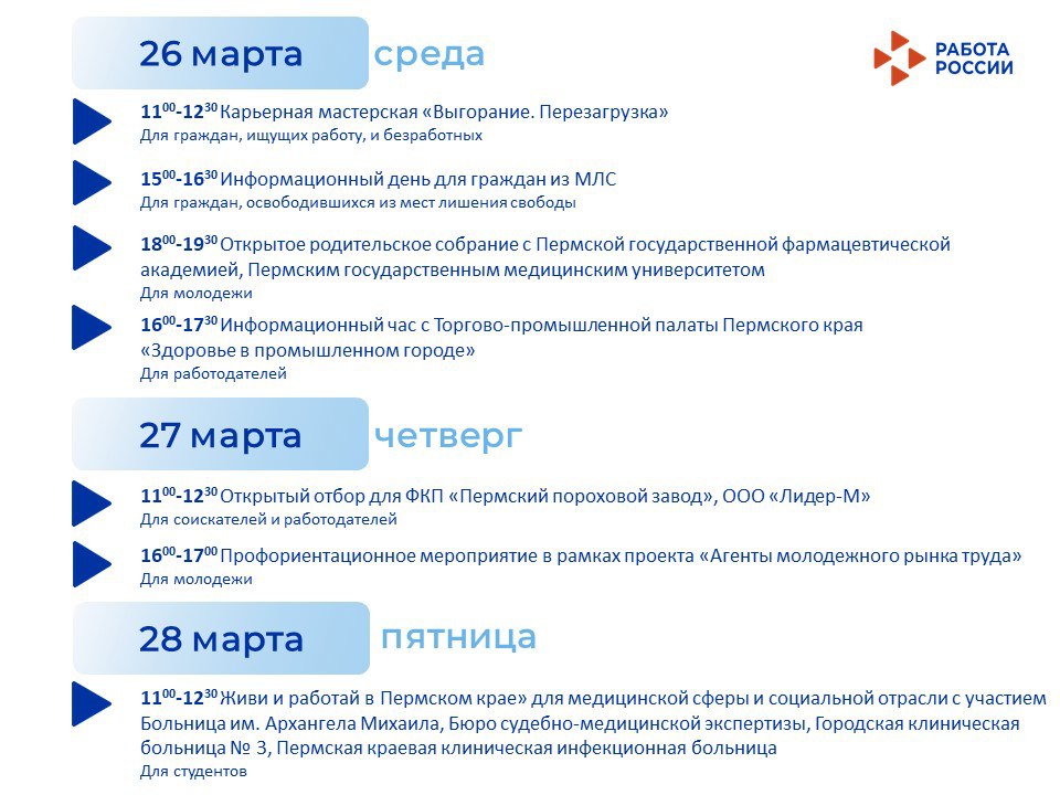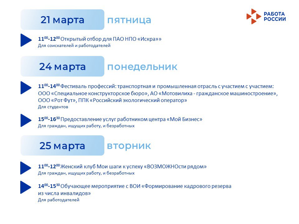 С 18 по 28 марта Кадровый центр продолжает проводить мероприятия для работодателей и для жителей города:
