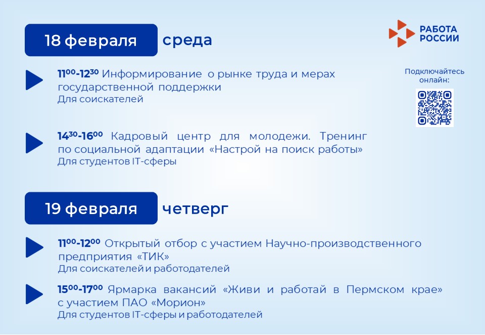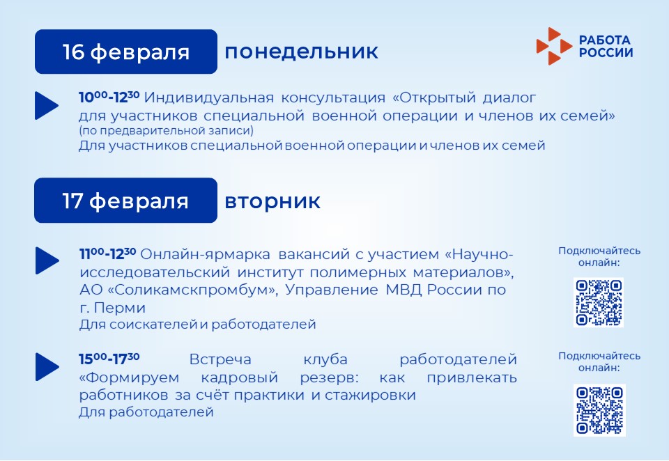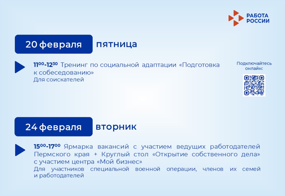 Мероприятия Кадрового центра «Работа России» для тех, кто ищет работу или сотрудников