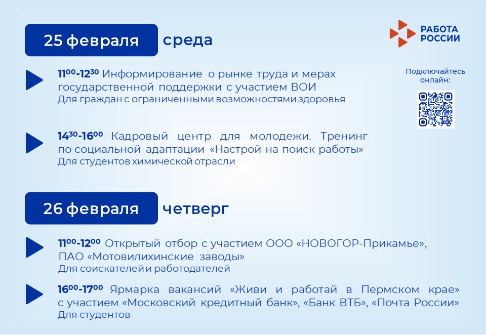 Мероприятия Кадрового центра «Работа России» для тех, кто ищет работу или сотрудников