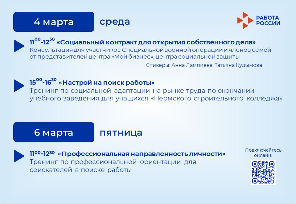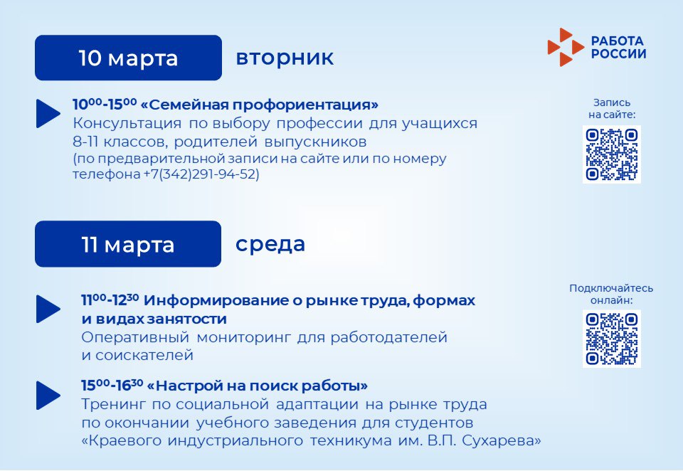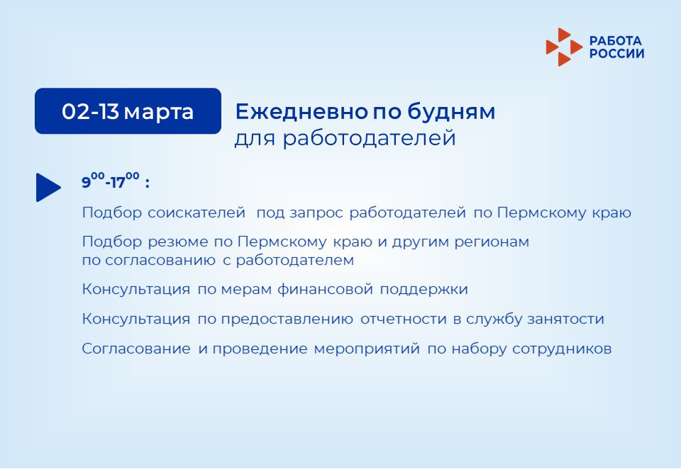 Мероприятия Кадрового центра «Работа России» для тех, кто ищет работу или сотрудников